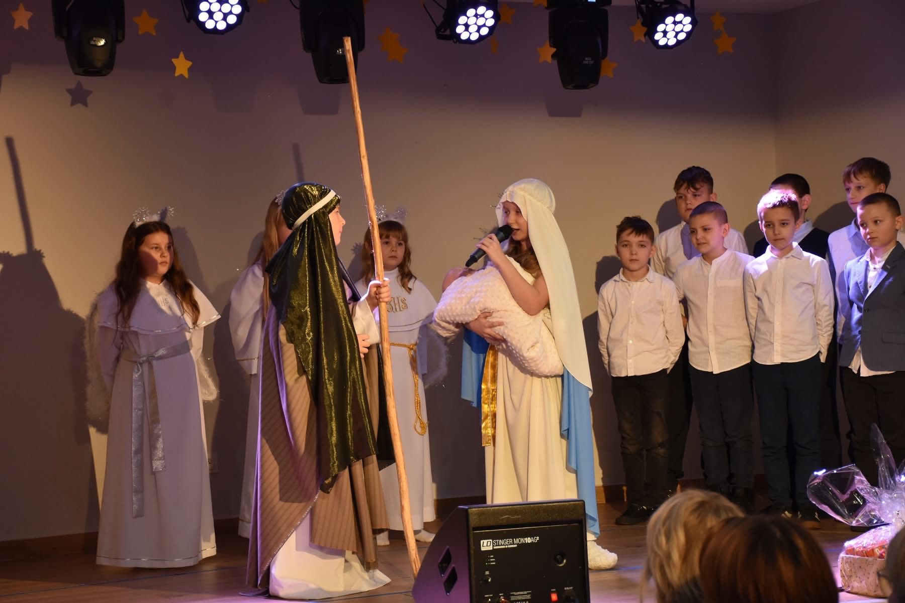 Uroczystość rozpoczął Wójt Gminy Chrostkowo, Mariusz Lorenc, który w swoim wystąpieniu zwrócił się do mieszkańców z serdecznymi życzeniami. Podkreślił znaczenie jedności, wzajemnego wsparcia oraz wspólnego pielęgnowania tradycji, które od lat budują wyjątkowy charakter lokalnej wspólnoty. Słowa Wójta wprowadziły wszystkich w podniosły, a zarazem ciepły nastrój oczekiwania na święta.Po oficjalnym otwarciu rozpoczęła się część artystyczna. Jako pierwsi zaprezentowali się uczniowie i przedszkolaki z Zespołu Szkół, przedstawiając piękne i wzruszające Jasełka, które spotkały się z ogromnym aplauzem publiczności. Następnie na scenie pojawili się starsi uczniowie, kontynuując świąteczny program występami pełnymi zaangażowania, talentu i młodzieńczej energii.