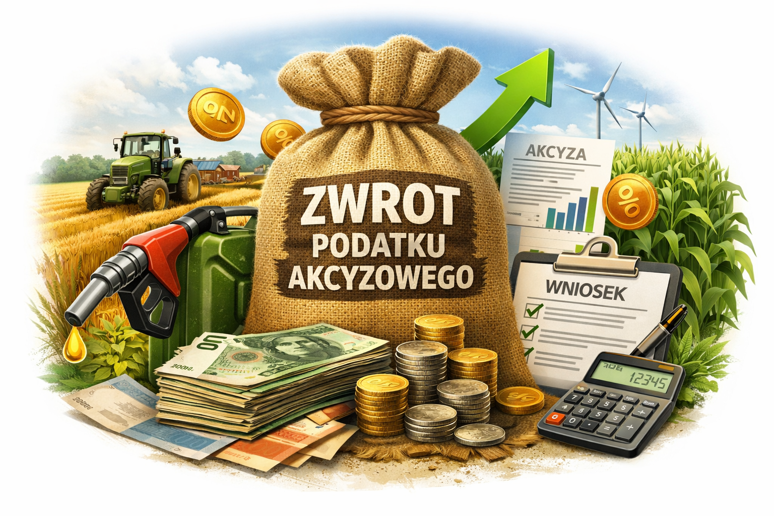 Limit zwrotu podatku akcyzowego w 2026 r. wynosi : 110 litrów / 1 ha użytków rolnych i 40 litrów / 1 DJP bydła, owiec, kóz i koni oraz 4 litry / 1 szt. świń