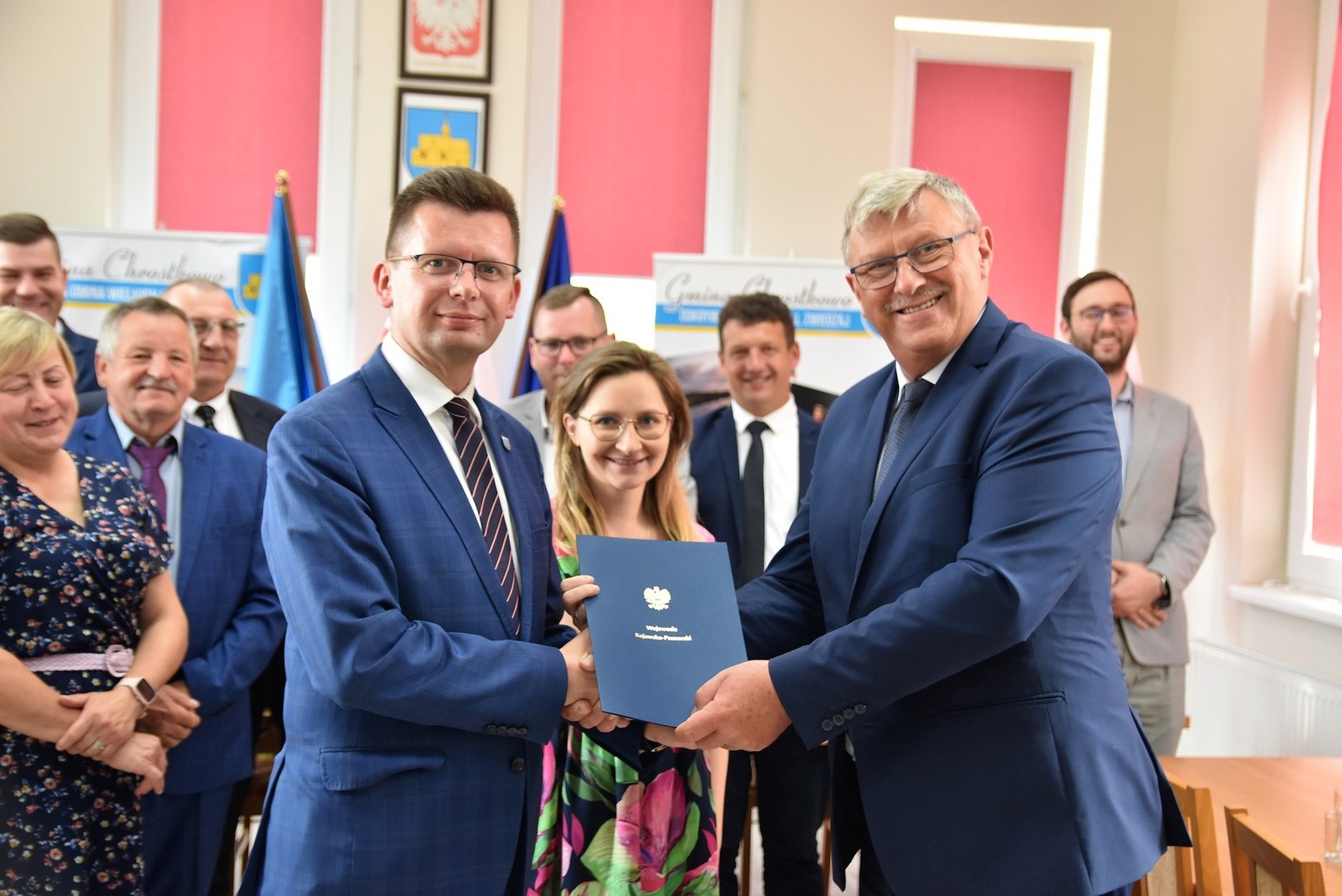 Podpisano także umowę z Wicewojewodą Józefem Ramlau na dofinansowanie drogi gminnej w Nowej Wsi. Będzie to już kolejna w tym roku, jakże oczekiwana przez mieszkańców, droga utwardzona asfaltem. Dofinansowanie z Rządowego Funduszu Dróg Samorządowych wynosi 50%. Obecnie przygotowujemy kolejne odcinki dróg, aby w przyszłości starać się o dofinansowanie i łączyć ze sobą kolejne szlaki komunikacyjne.