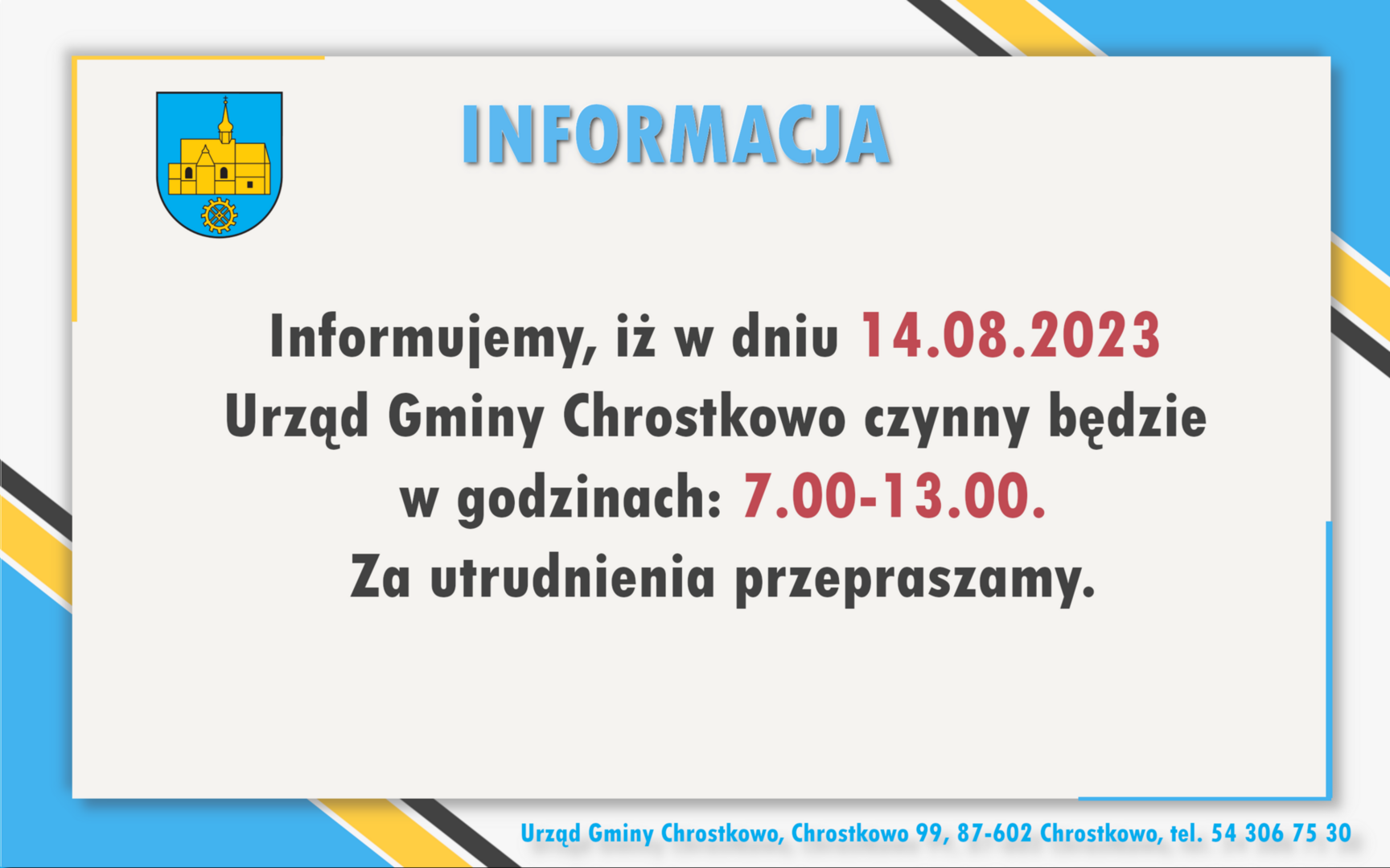 Godziny pracy Urzędu Gminy Chrostkowo w dniu 14.08.2023