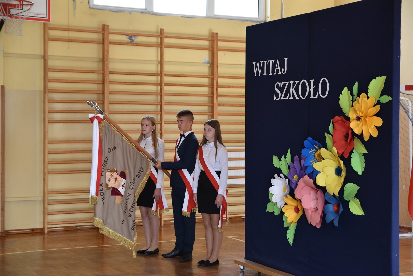 Tegoroczna inauguracja roku szkolnego odbyła się 4 września br. Punktualnie o 9.00 w Zespole Szkół w Chrostkowie zabrzmiał pierwszy dzwonek, a uczniowie, grono pedagogiczne oraz rodzice licznie zgromadzili się w Sali gimnastycznej. Rozpoczęty nowy rok szkolny przyniósł ze sobą wiele nowości. Wszystkich zgromadzonych powitała Pani Dyrektor Katarzyna Mejgier.Wójt Gminy Mariusz Lorenc w swoim przemówieniu życzył nauczycielom i rodzicom dobrej i owocnej współpracy, a uczniom wielu sukcesów i wpaniałego roku szkolnego. Wśród zaproszonych gości obecnych na uroczystości byli m.in. ks. proboszcz Krzysztof Krawczak, Przewodniczący Rady Gminy Patryk Chojnicki oraz Marzena Maciejewska – Przewodnicząca Komisji Oświaty, Zdrowia, Kultury i Spraw Socjalnych. Podczas akademii Pani Dyrektor przedstawiła Wicedyrektora Wiesława Ostrowskiego, a także wychowawców klas. Na zakończenie uczniowie udali się na spotkania indywidualne w swoich grupach.