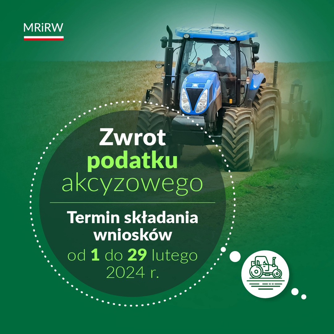 W związku ze zwrotem podatku akcyzowego zawartego w cenie oleju napędowego za I półrocze 2024 r. wykorzystywanego do produkcji rolnej, wszyscy rolnicy posiadający użytki rolne na terenie Gminy Chrostkowo proszeni są o złożenie wniosku do Wójta Gminy Chrostkowo w terminie