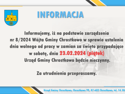 W dniu 23.02.2024 UG Chrostkowo będzie nieczynny